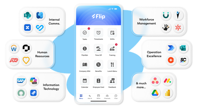 Flip wurde 2018 in Stuttgart gegründet und bedient heute über 500 Unternehmenskunden in mehr als 100 Ländern. Die Plattform wurde von Grund auf für Frontline-Worker konzipiert: Menschen ohne festen PC-Arbeitsplatz, ohne Firmen-E-Mail und oft mit wechselnden Schichten. Flip vereint interne Kommunikation, HR-Self-Service, Workflow-Automatisierung und KI-native Tools in einer einzigen App, die im Corporate Design des jeweiligen Unternehmens erscheint. Zu den Kunden zählen REWE, McDonald's Deutschland, Bosch, Porsche, MAHLE, GLS und EDEKA. Die App erreicht typischerweise Nutzungsraten von über 95 Prozent bei Frontline-Belegschaften.